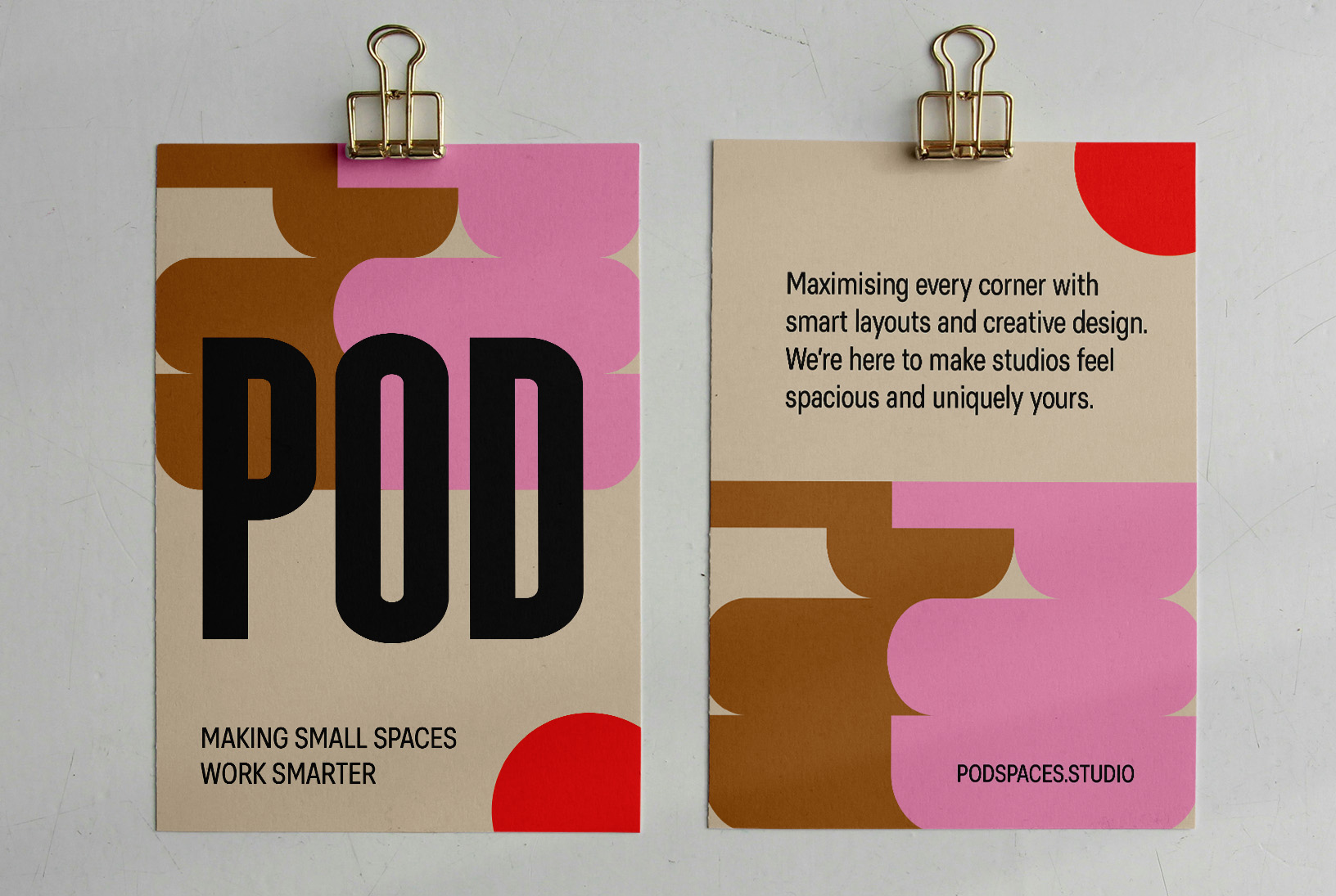 Branding and graphic design for POD. An interior design business who specialise in small spaces. The modular shapes morph and expand to each touchpoint to show the flexibility of the interior layouts. I wanted to create visuals that felt homely but intriguing – almost like a homeware pattern which is used as a design system for print and digital marketing materials.